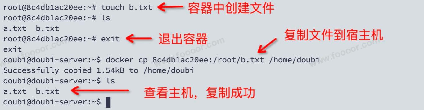 我们有时候需要在宿主机和容器之间传输文件,使用 docker cp 命令,在宿主机和容器之间相互拷贝文件: