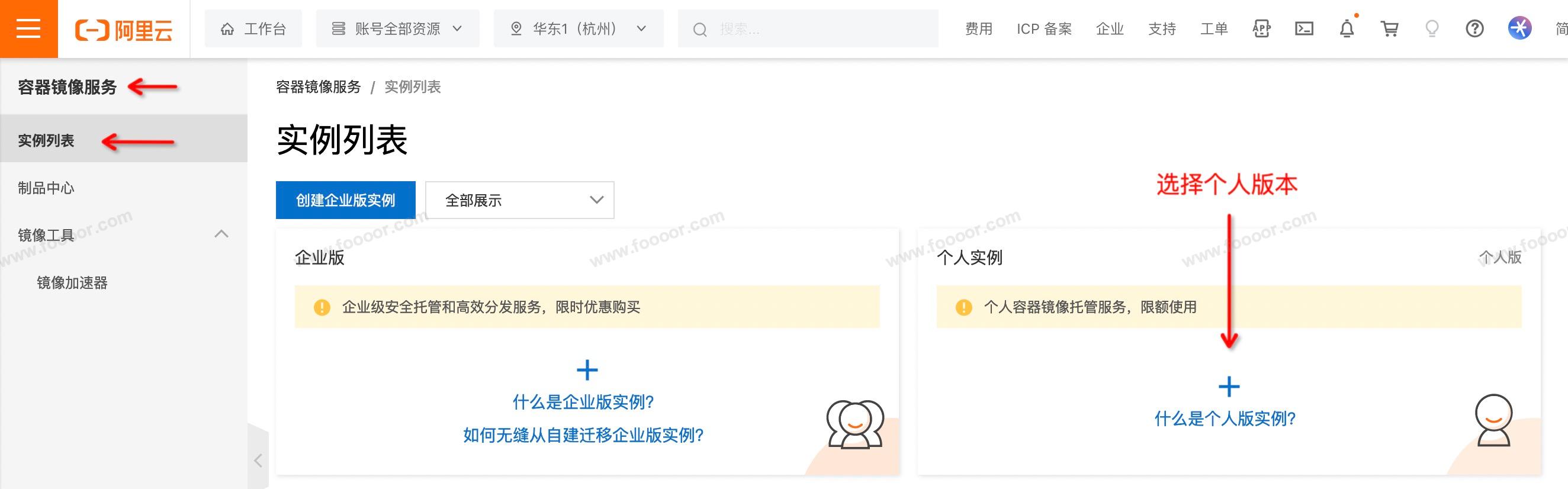首先注册和登录阿里云账户,然后找到镜像服务: