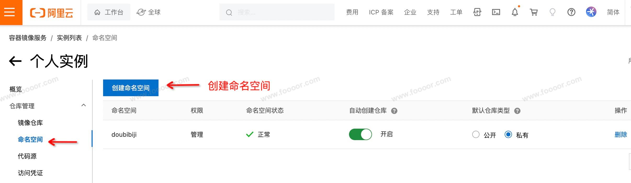 同样使用 Docker,我们可以使用 Dockerhub,但是 Dockerhub 是国外的,网络太慢了,上传和拉取都容易失败。所以我们使用阿里云的远程镜像仓库。