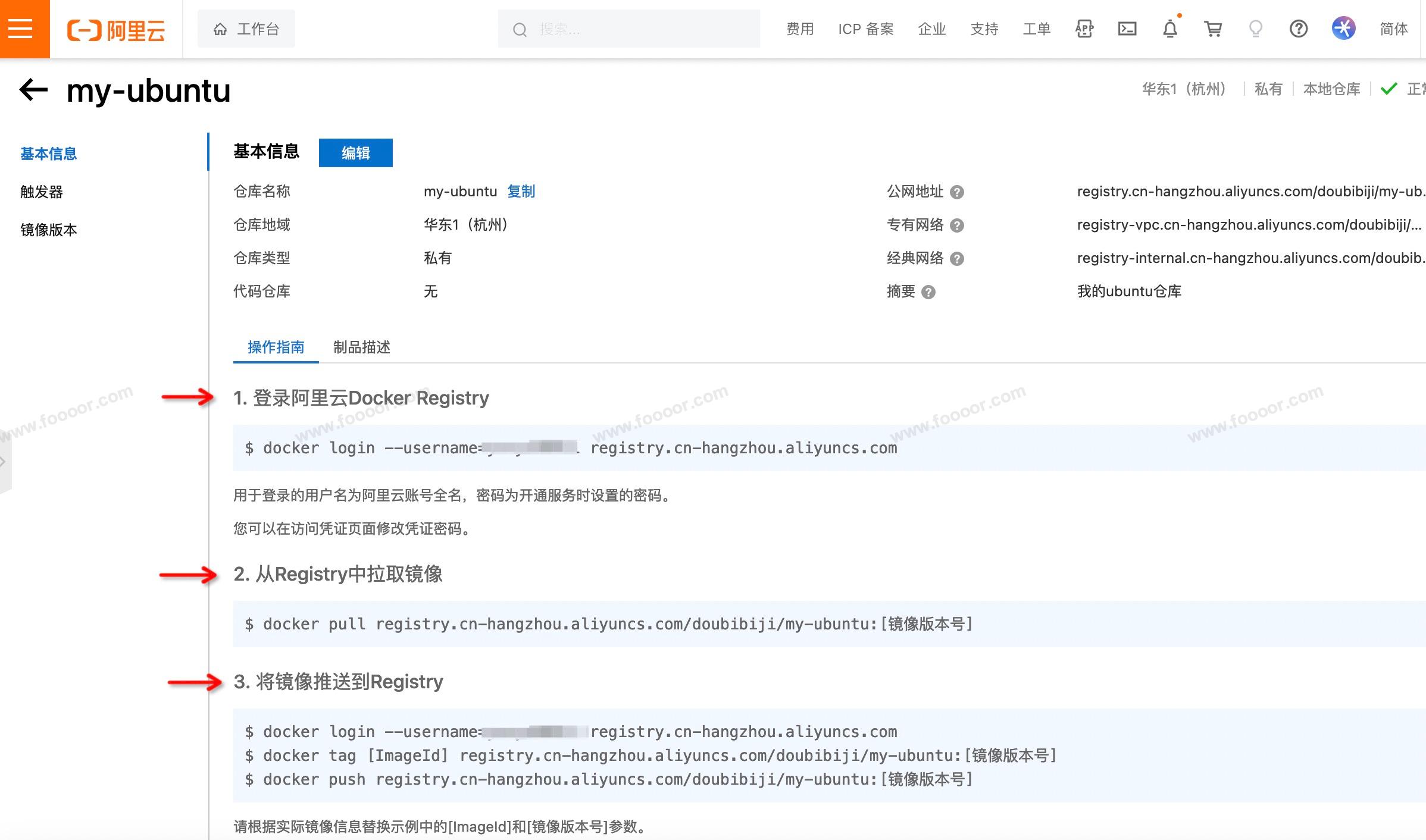 docker push registry.cn-hangzhou.aliyuncs.com/doubibiji/my-ubuntu:[镜像版本号]执行: