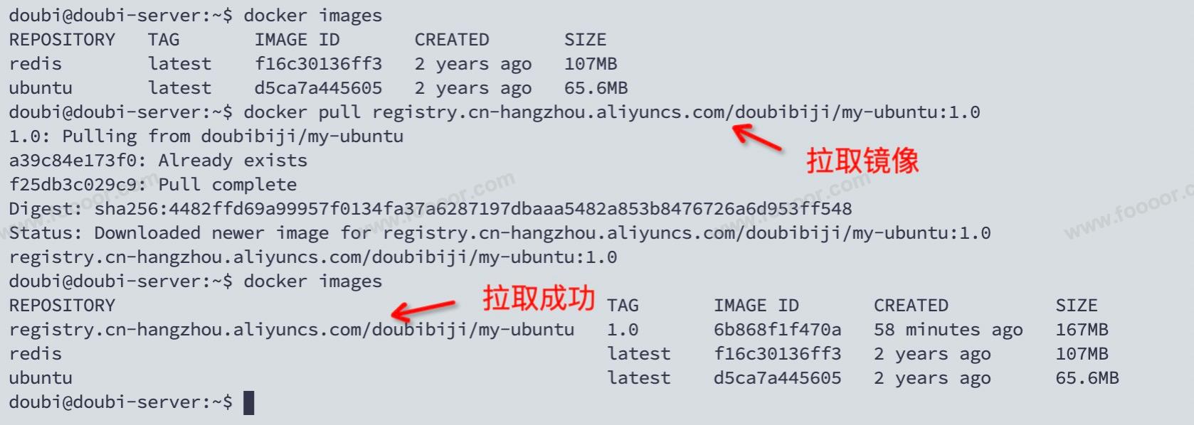 docker pull registry.cn-hangzhou.aliyuncs.com/doubibiji/my-ubuntu:[镜像版本号]拉取镜像