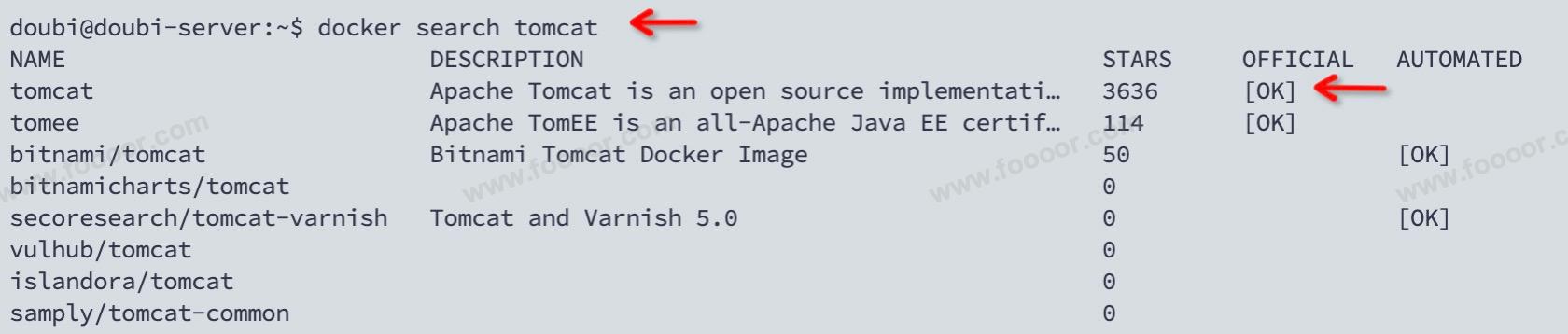 docker search tomcat找到官方镜像: