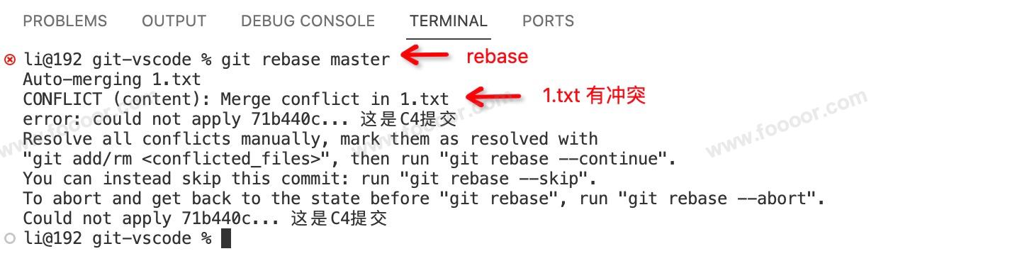 shellgit add 1.txt然后执行 continue 命令,继续 rebase: