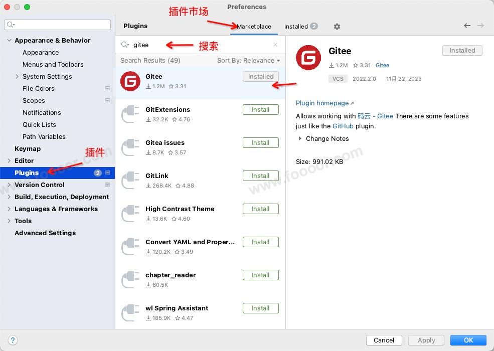 如果要使用 gitee 作为远程仓库,我们可以先安装 gitee 的插件。
