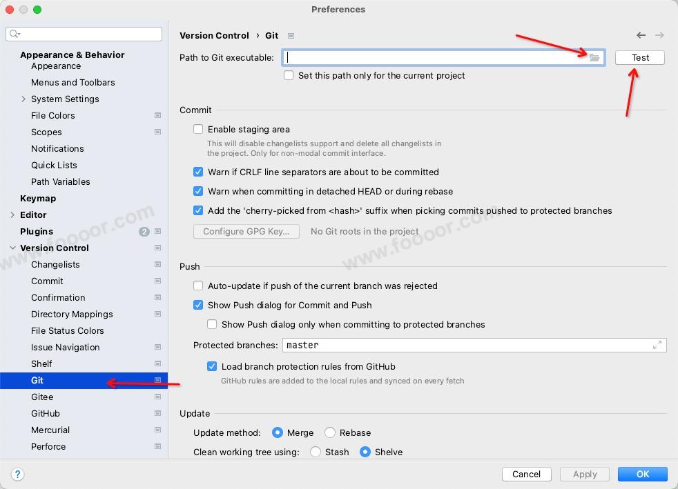 首先在 IDEA 中配置 git 路径,并测试是否可用。