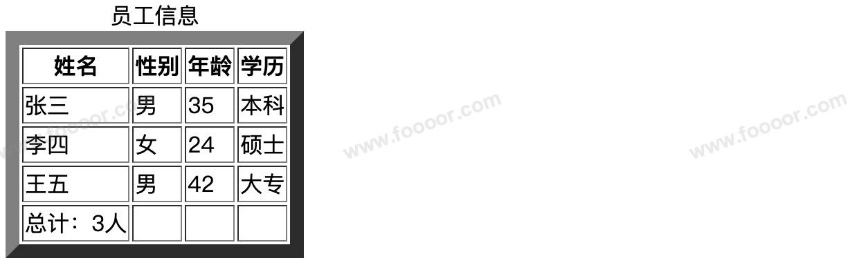 这个章节介绍了太多表格相关的属性,其中关于表格样式的设置太多了,实际开发中都是通过 CSS 来设置的,这里了解一下即可。