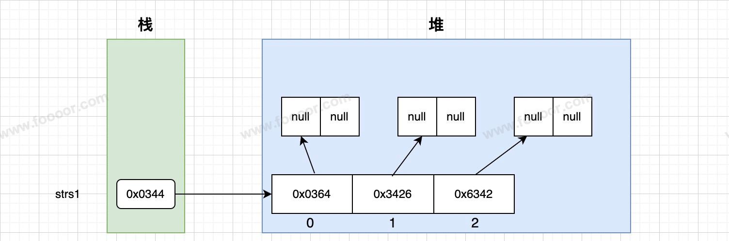 String[][] strs1 = new String[3][2];内存结构如下: