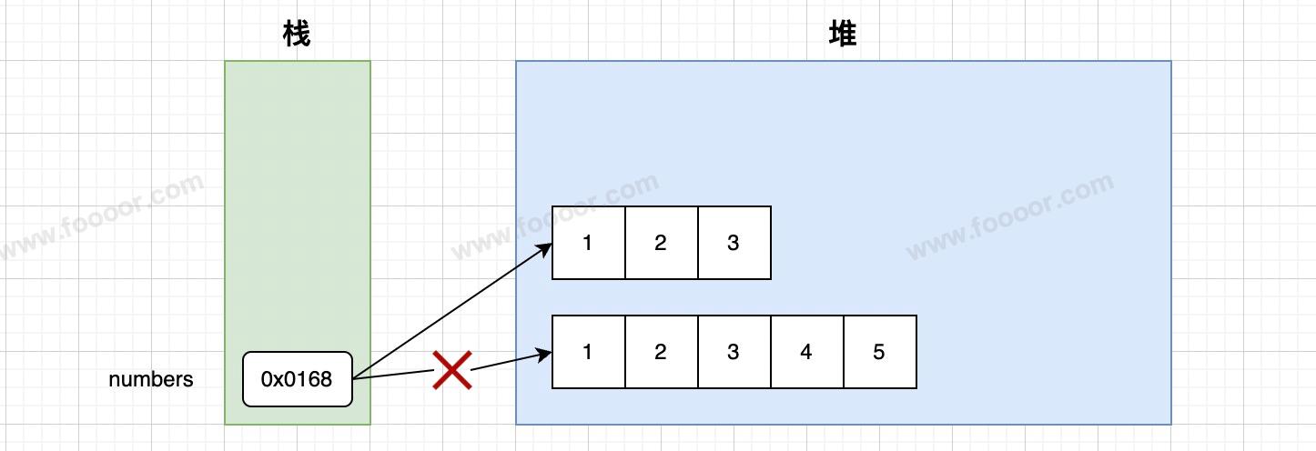numbers 被赋值为一个新的数组,那么存储的是新的数组的首地址值,numbers 与新的数组建立关系,与原来的数组断开联系了。