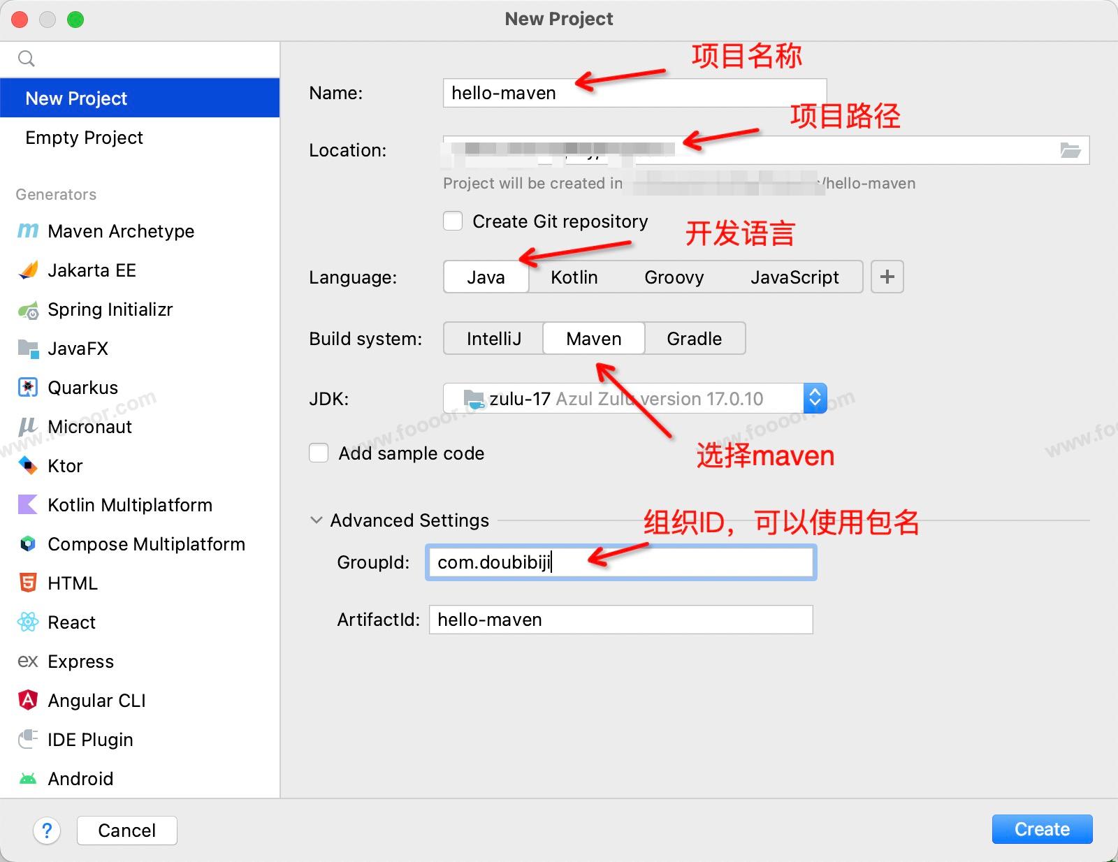Build system 选择使用 Maven。