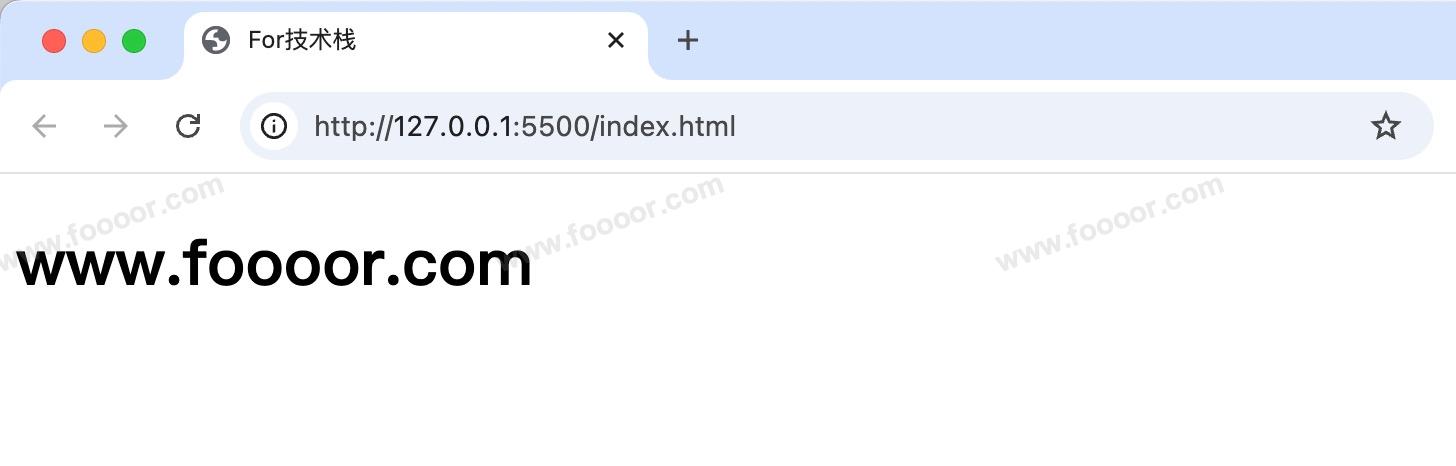 会看到地址栏的地址和之前我们直接在本地打开文件有所区别,这是因为 Live-Server 是以服务器的方式运行编写的页面,我们在浏览器实际是请求服务器获取到页面的内容。