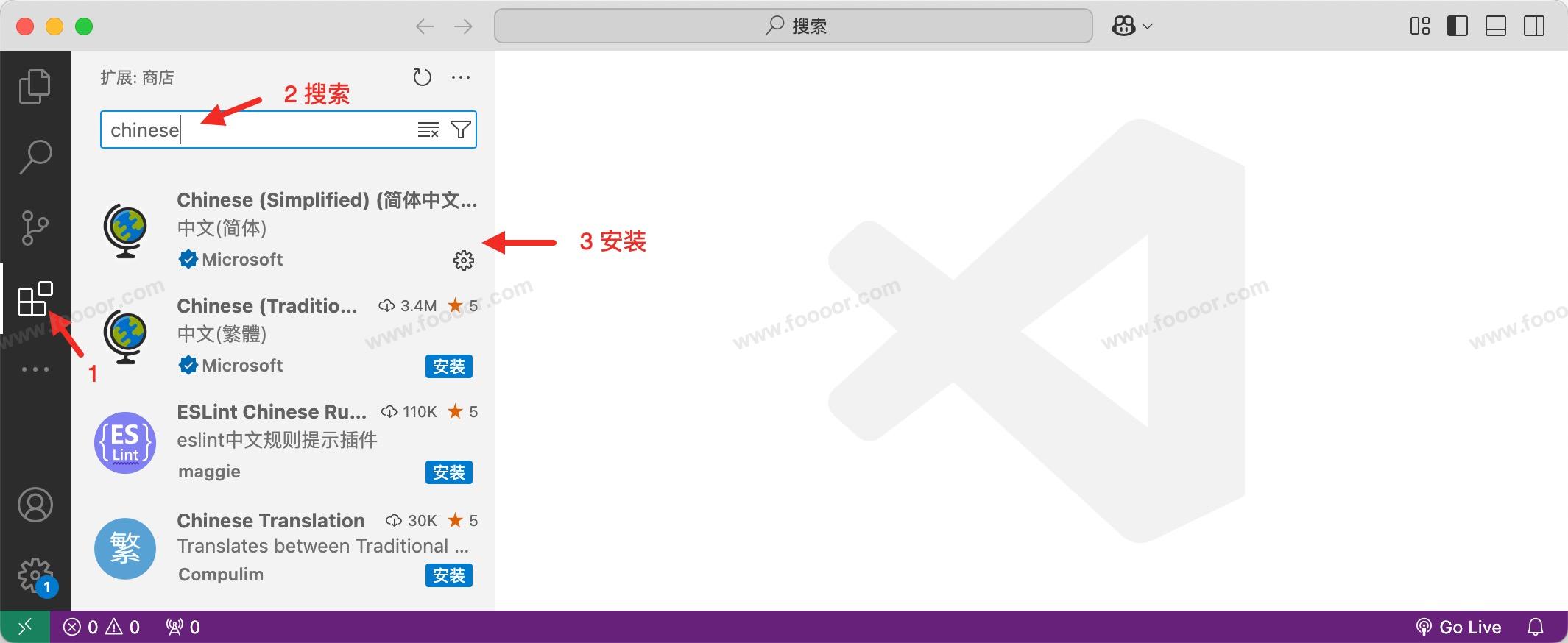 - Chinese (Simplified) Language Pack for Visual Studio Code:中文(简体)语言包,安装完成,VS Code会显示为中文,如果习惯使用英文,可以不安装;