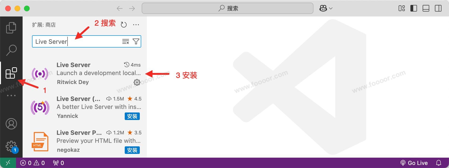 - Live Server:A Quick Development Live Server with live browser reload,即提供一个 live 服务器,并且支持代码与浏览器之间的实时同步刷新,当我们编写完代码后保存,浏览器会自动刷新,可以实时看到效果,安装。