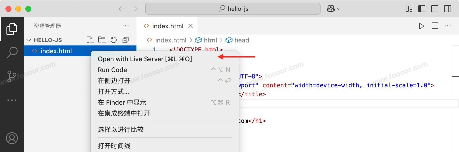 </html>然后在 HTML 文件上右键单击,选择 Open With Live Server, 即可在浏览器中打开当前页面。