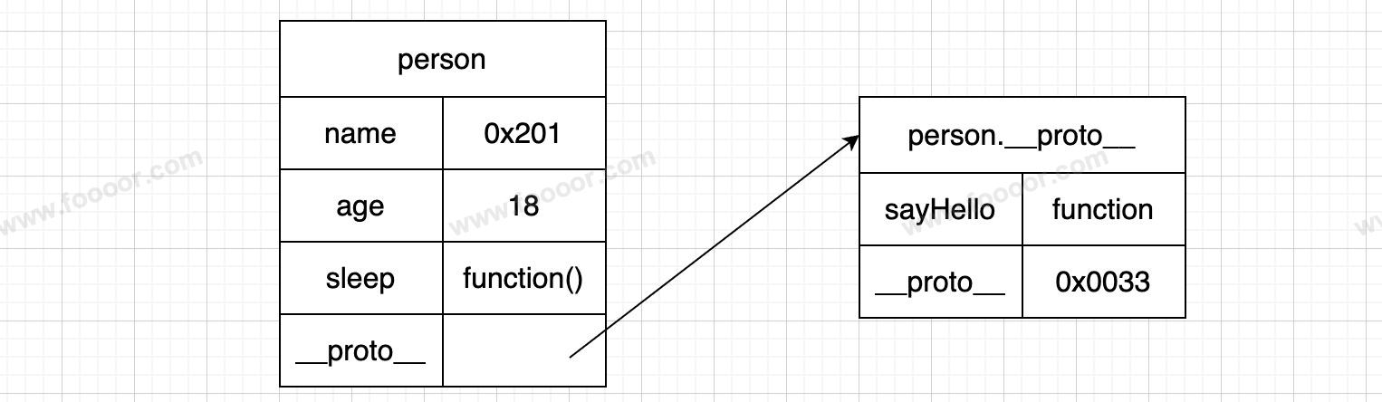 在对象中,会有一个属性存储原型对象的引用,这个属性叫 __proto__ :