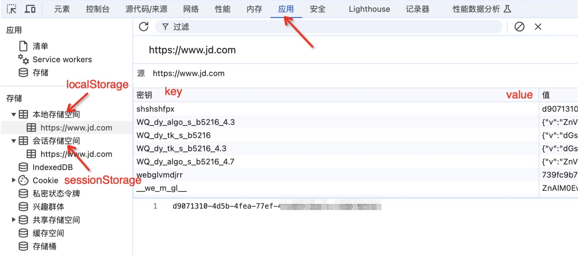 例如我访问京东网站,使用开发者工具,查看本地存储的数据: