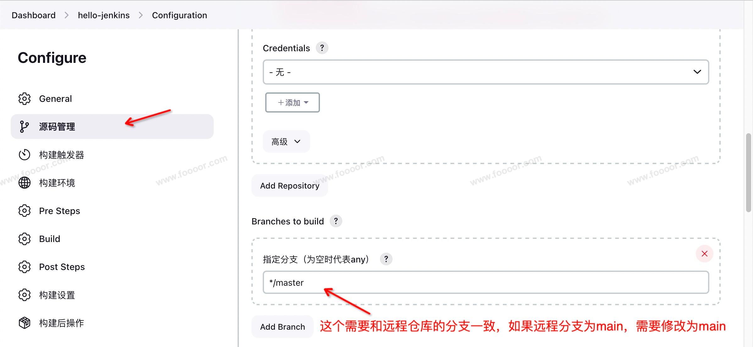 分支配置:
