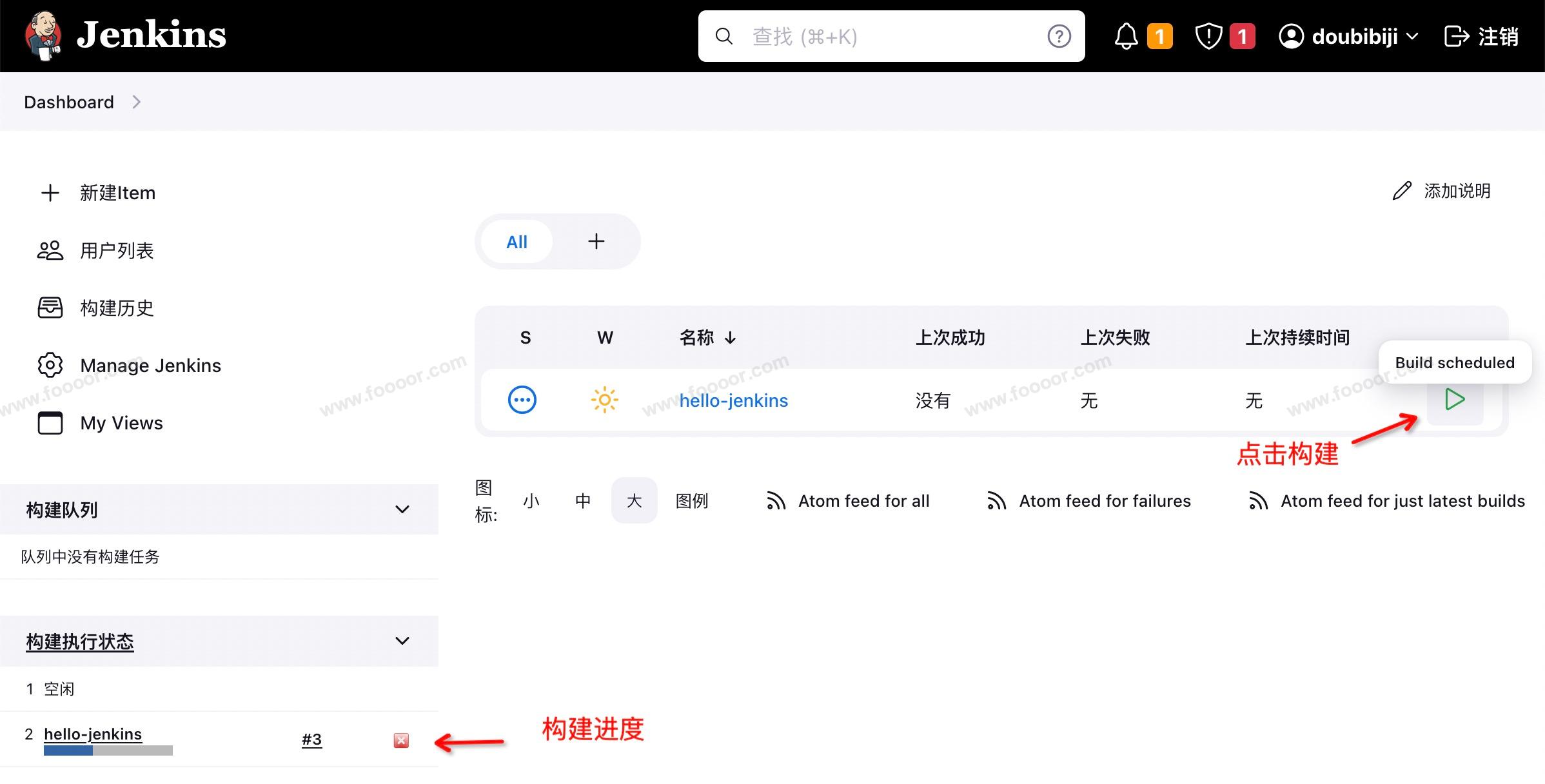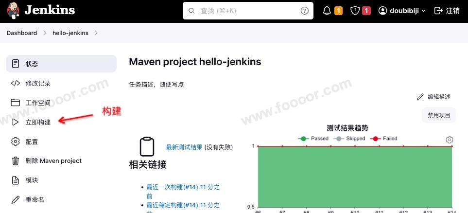 现在任务已经创建了,可以在任务列表,点击任务后面的按钮,手动执行构建。