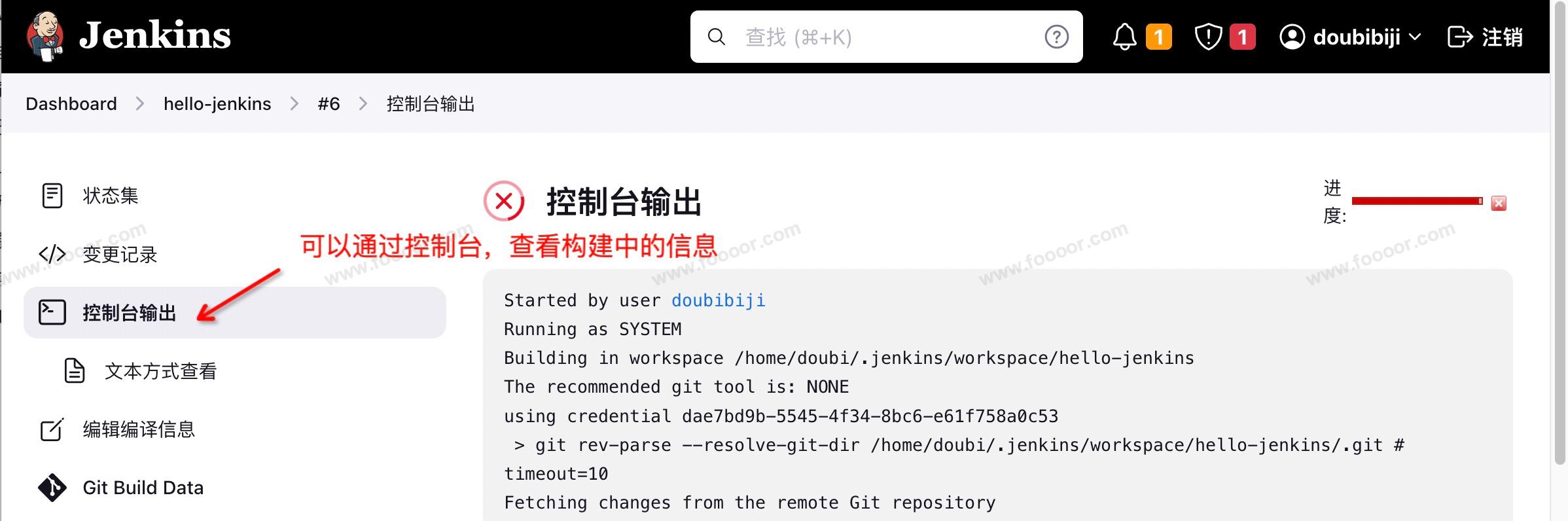 在 Jekins 的控制台页面,可以查看构建日志: