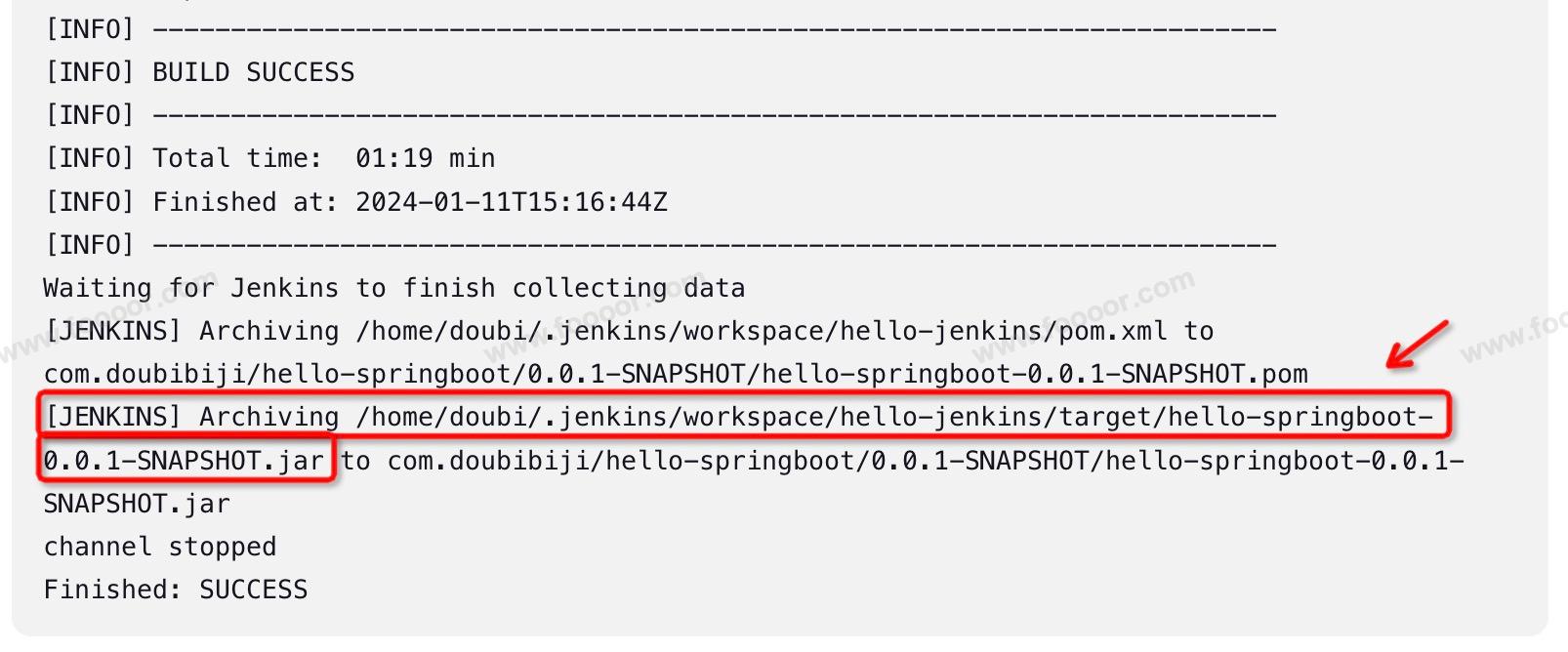构建如果成功,会显示成功,并在 jenkins 的工作空间下构建出 SpringBoot 项目的 jar 包。