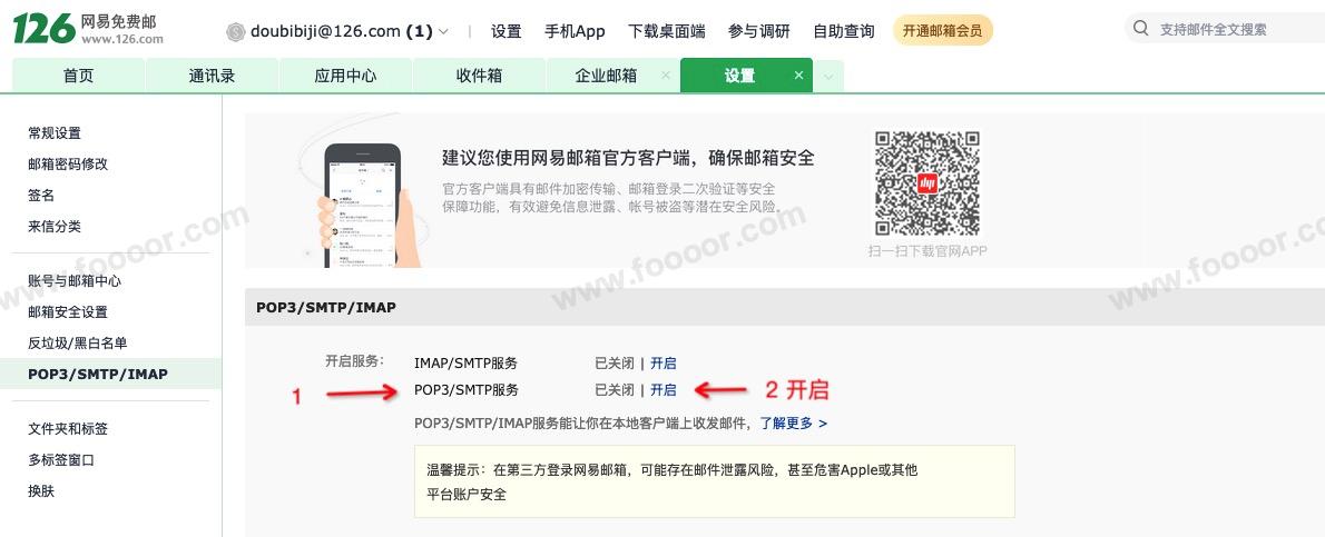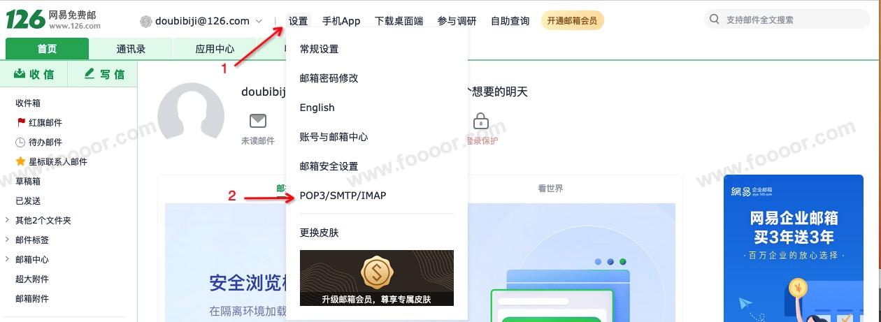 首先需要有一个 126 的邮箱,然后在设置中找到 POP3/SMTP/IMAP 配置。