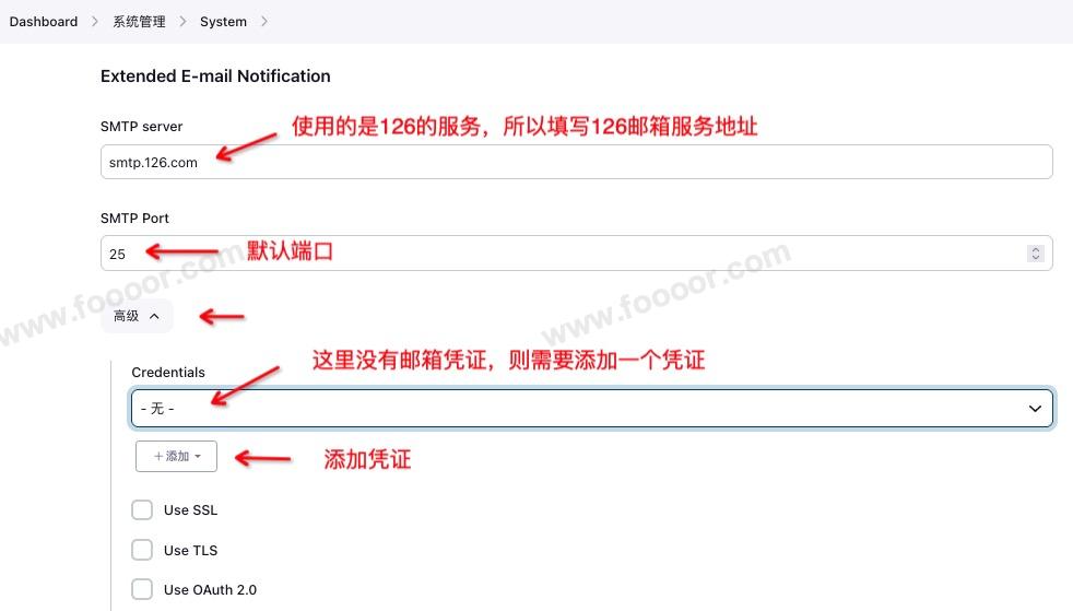 不勾选 Use SSL,SMTP Port 为 25;勾选 Use SSL,SMTP Port 为 465 。