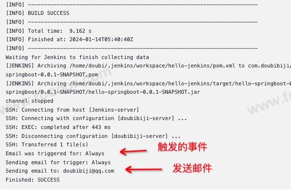 构建的时候,查看控制台信息,可以看到发送邮件的日志。