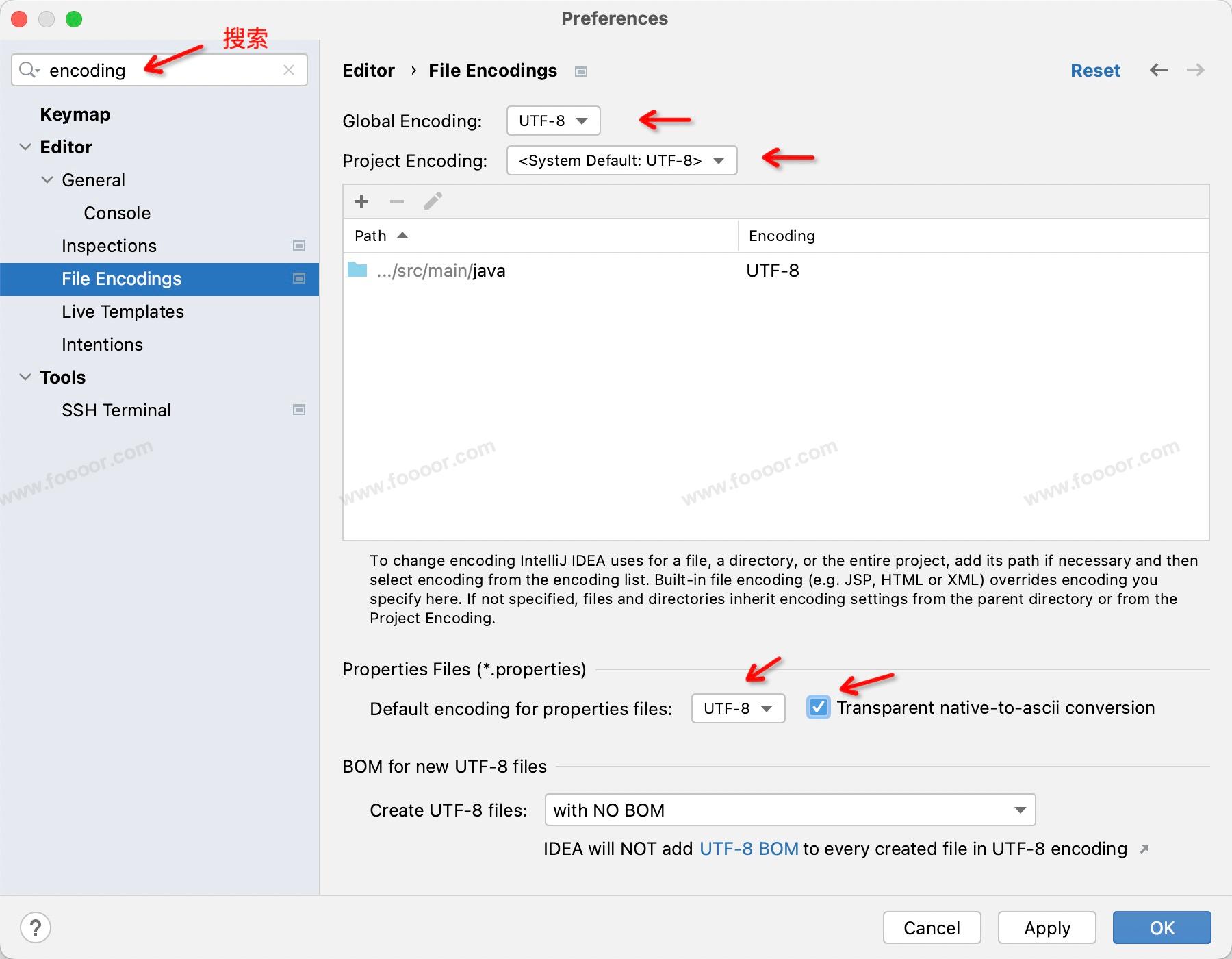 防止文件出现乱码,需要设置一下项目文件的字符编码。