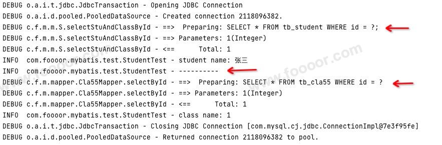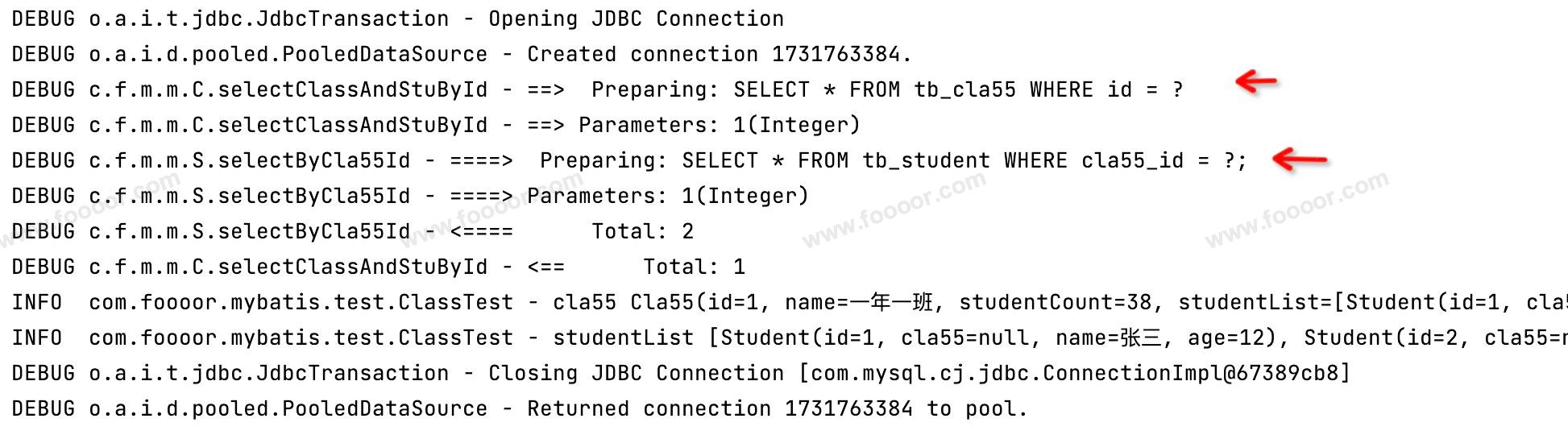 执行测试方法,发现执行了两条 SQL(没有配置延迟加载) ,如下: