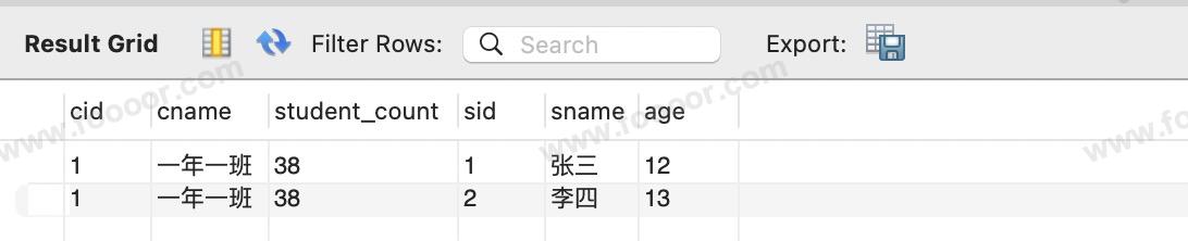 如果单纯的使用 SQL 查询班级信息和对应的学生信息,SQL 应该是这样的: