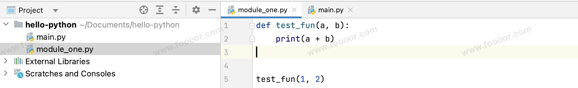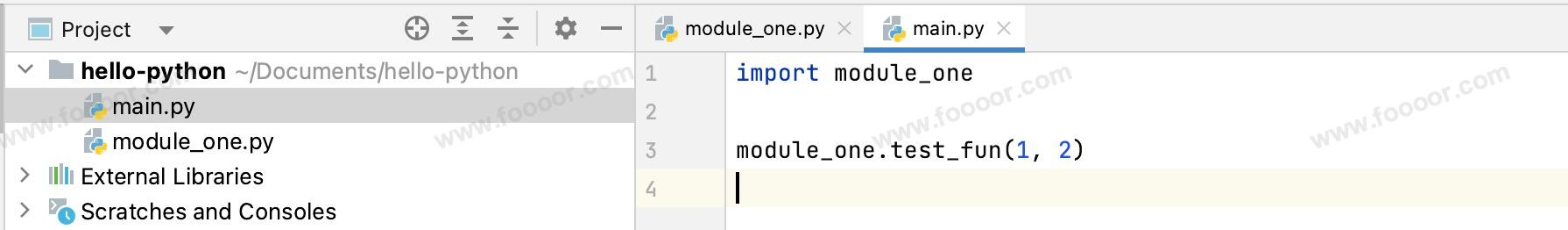 然后,我们在main.py中引入module_one模块,然后调用其中的test_fun()函数: