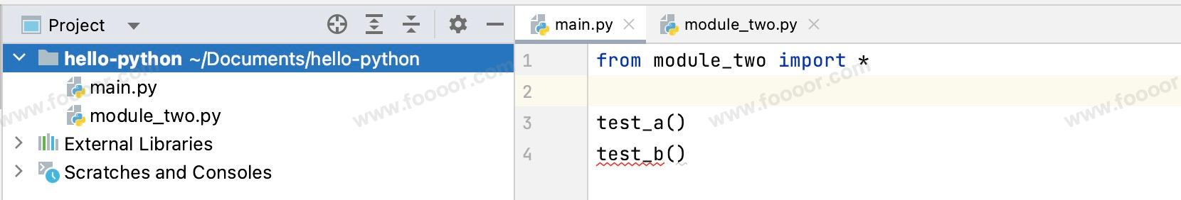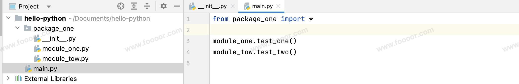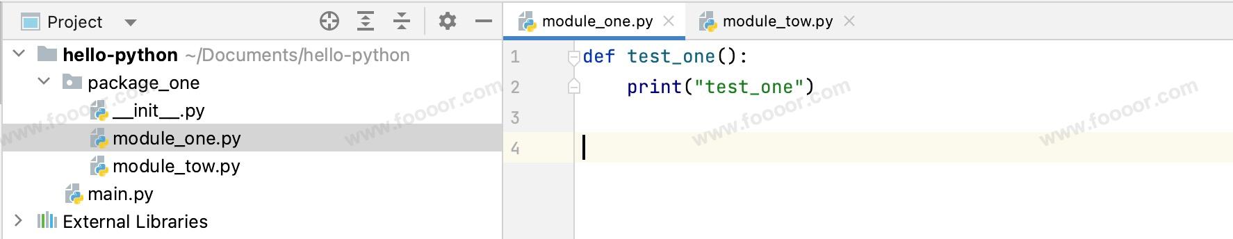 然后在包下新建两个模块,module_one.py 和 module_two.py: