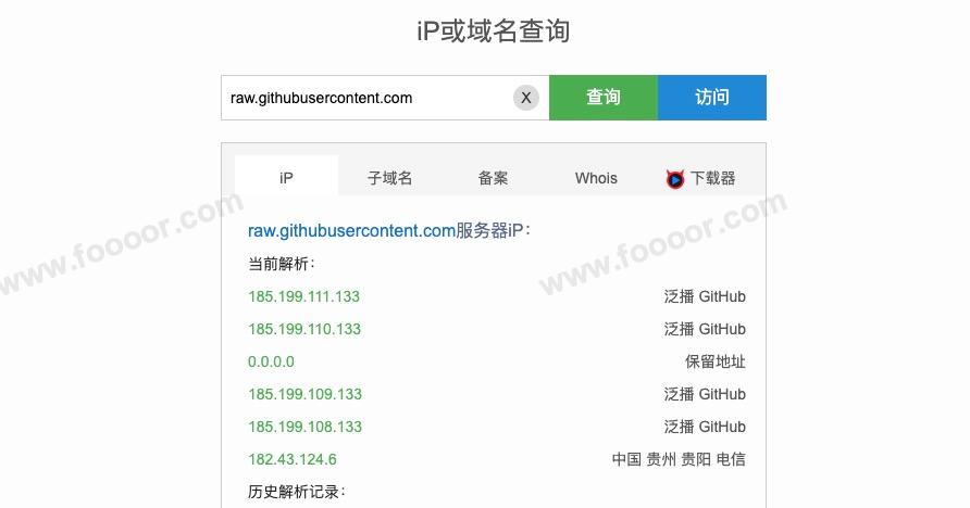 或者,访问 https://www.ipaddress.com/ ,在顶部搜索栏输入 raw.githubusercontent.com 进行查询: