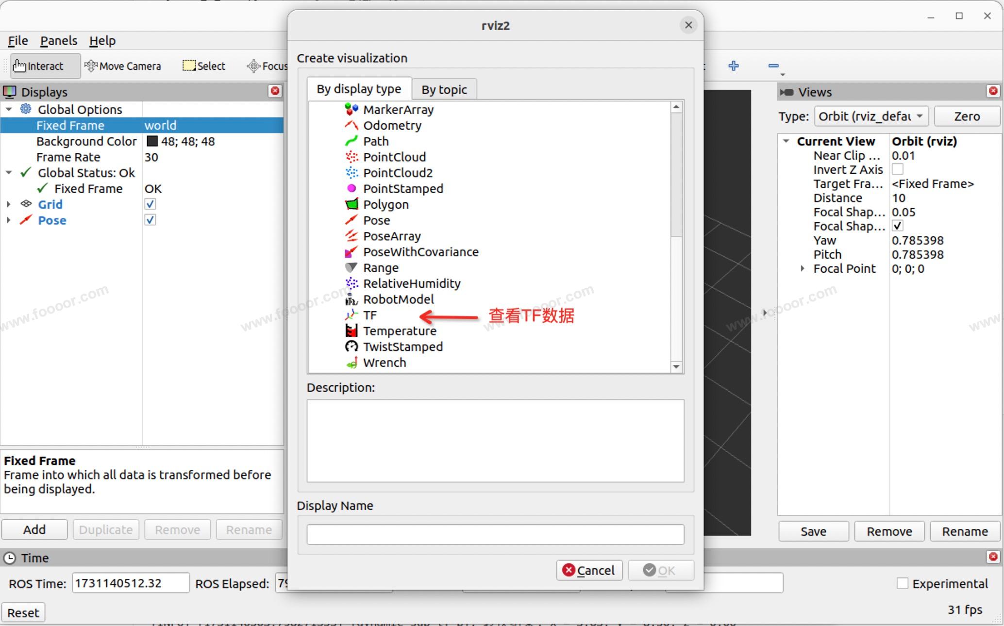 ros2 run rviz2 rviz2 -d config_file.rviz12.1 使用rviz查看TF