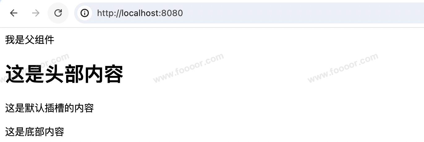 可以看到在父组件中,使用子组件的时候,在子组件标签中间添加的内容是看不见的。