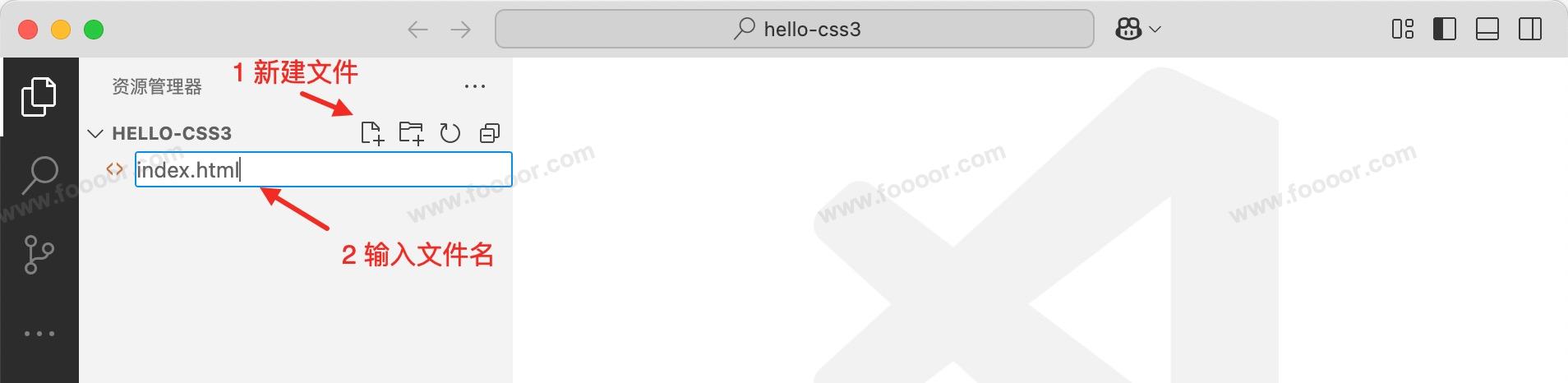 首先在指定的目录下(自己想放的路径下)新建一个文件夹作为工作区,例如我这里新建了一个 hello-css3 的文件夹,然后打开VS Code,用 VS Code 打开新建的文件夹。