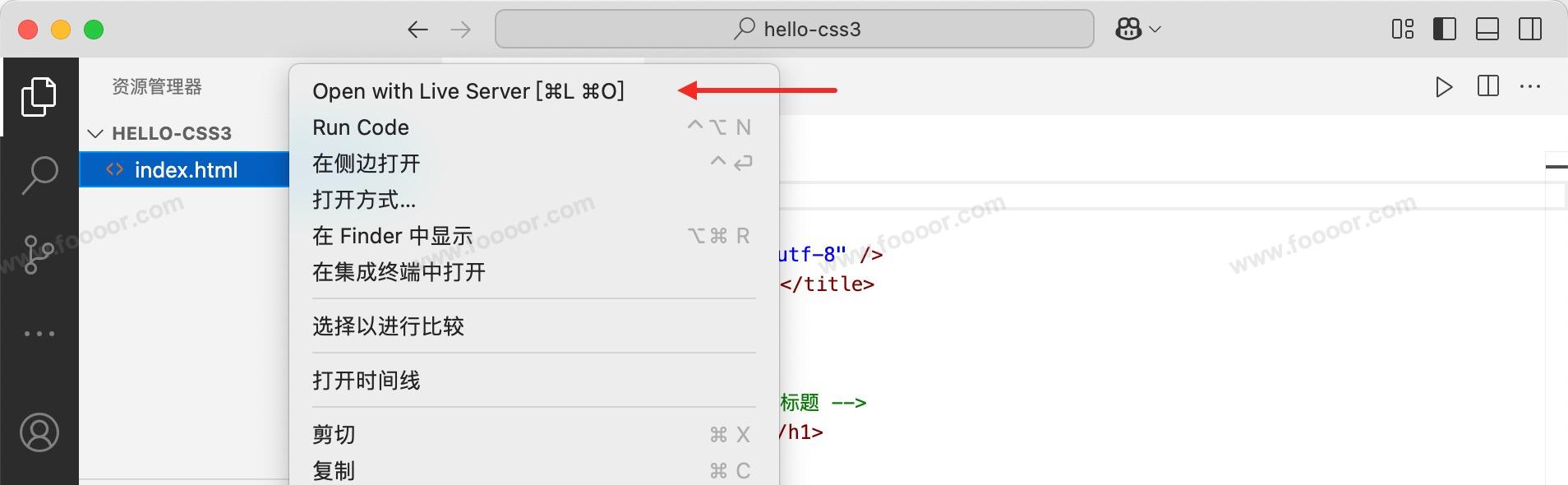 </html>然后在 HTML 文件上右键单击,选择 Open With Live Server, 即可在浏览器中打开当前页面。