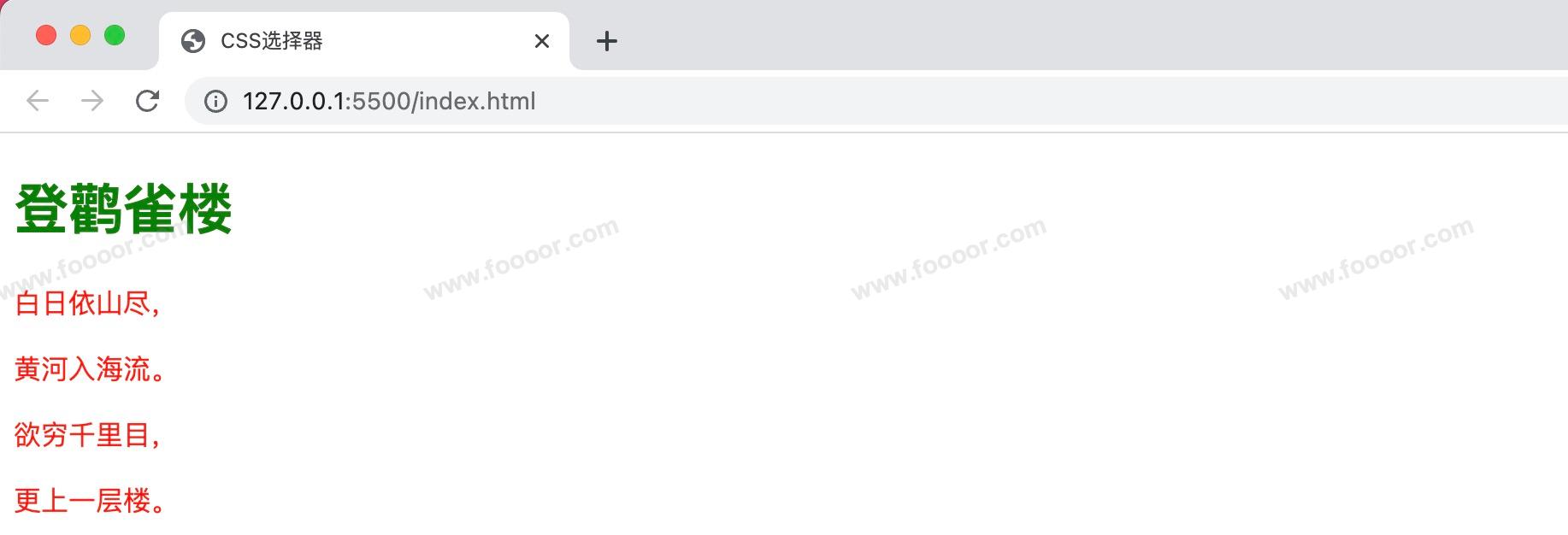 <p title="hello-foooor">黄河入海流。</p>4.2 复合选择器