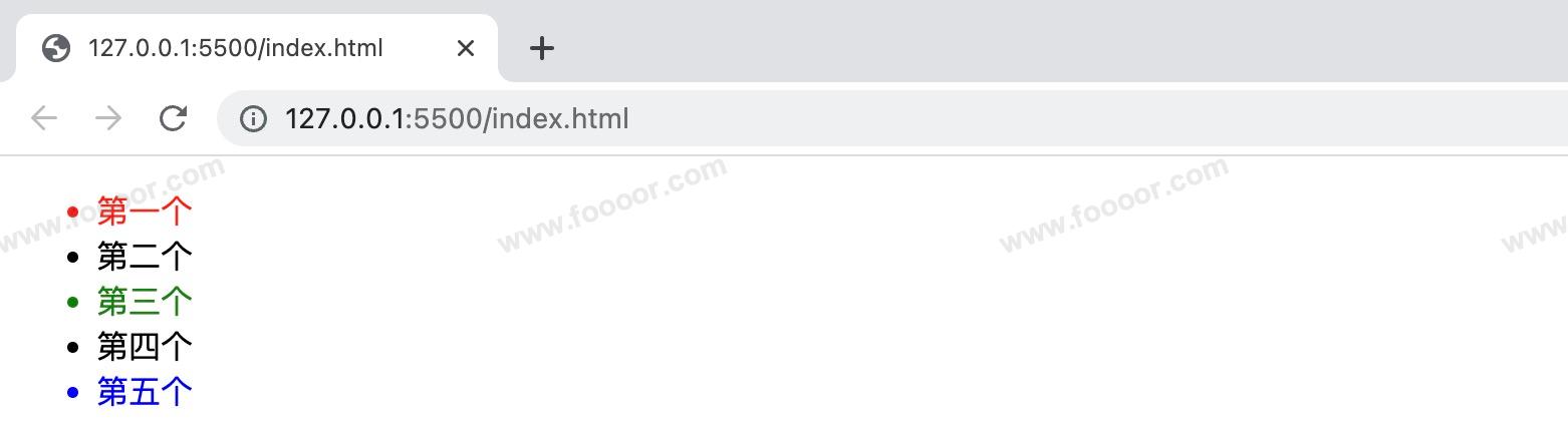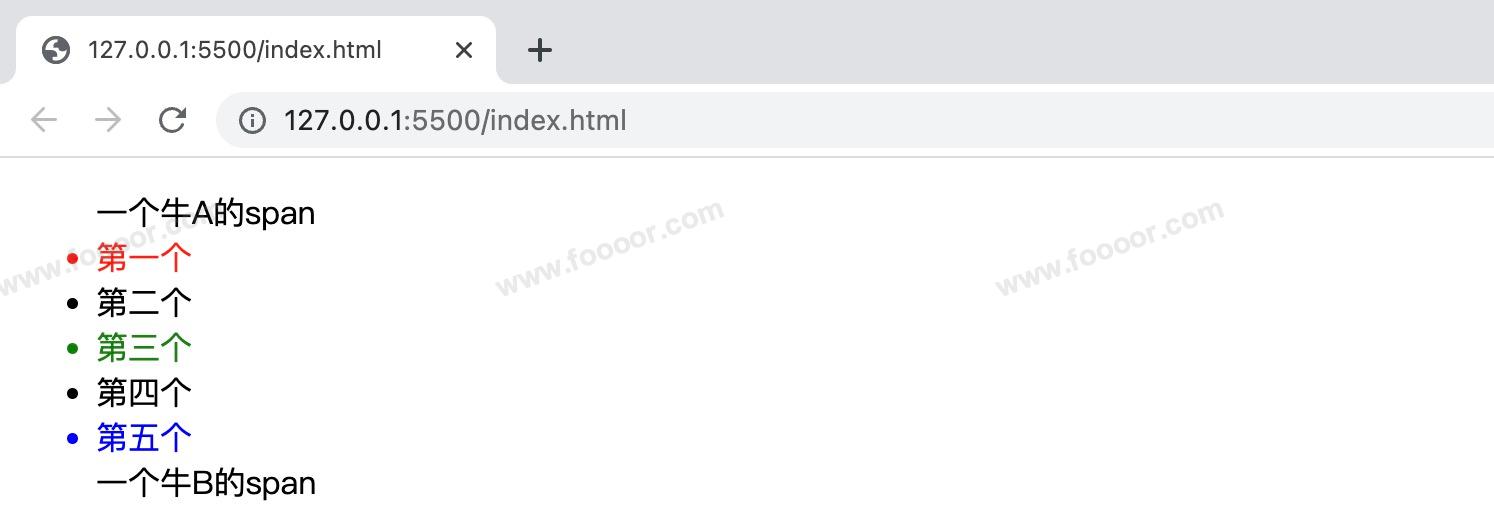 发现第一个 li 和最后一个 li 都没有被选中了,这里因为以上这些伪类都是根据所有的子元素进行排序的。