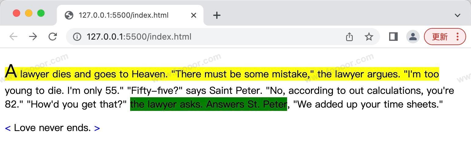 }上面表示选中同时有 test,test1,test2 三个类的元素,也就是 欲穷千里目 这一句的元素。