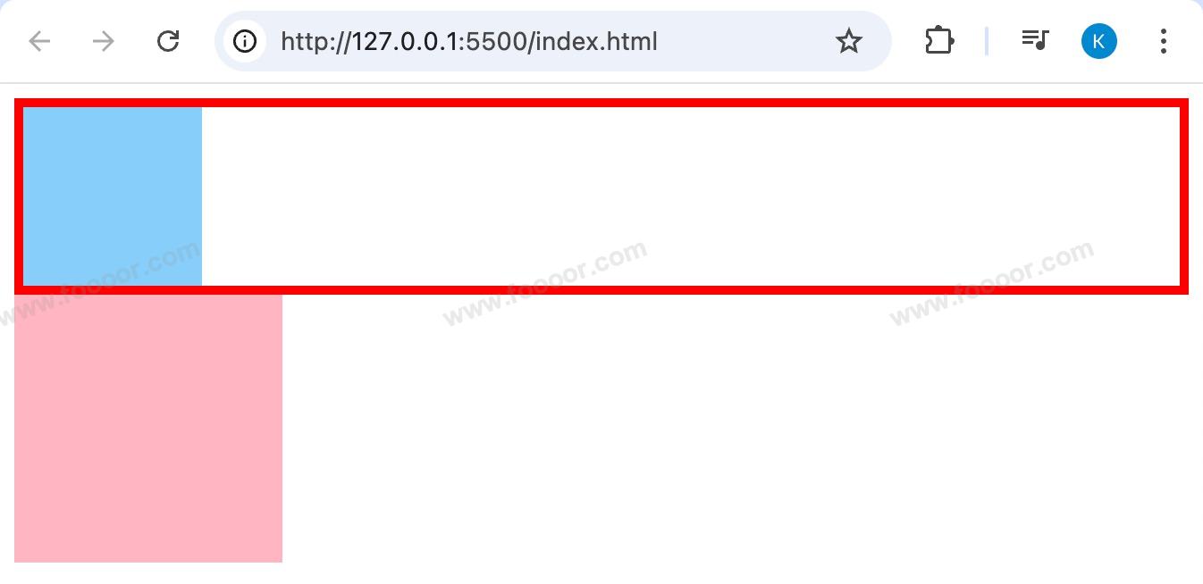 父元素不再独占一行(上面粉色的元素是块元素,所以看不出来),宽度也没有了,同时与下方元素会有一点间隙,不推荐。