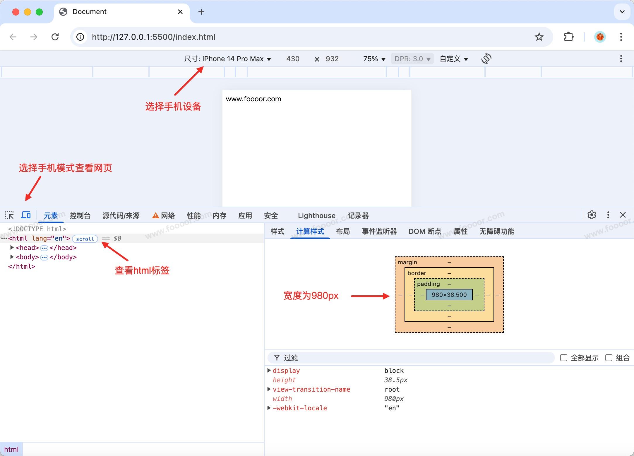 默认情况下,通过移动端访问网页,视口的大小都是 980px (CSS像素),即使手机的尺寸不同,但是宽度都是 980 个CSS像素。