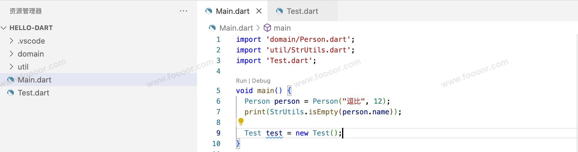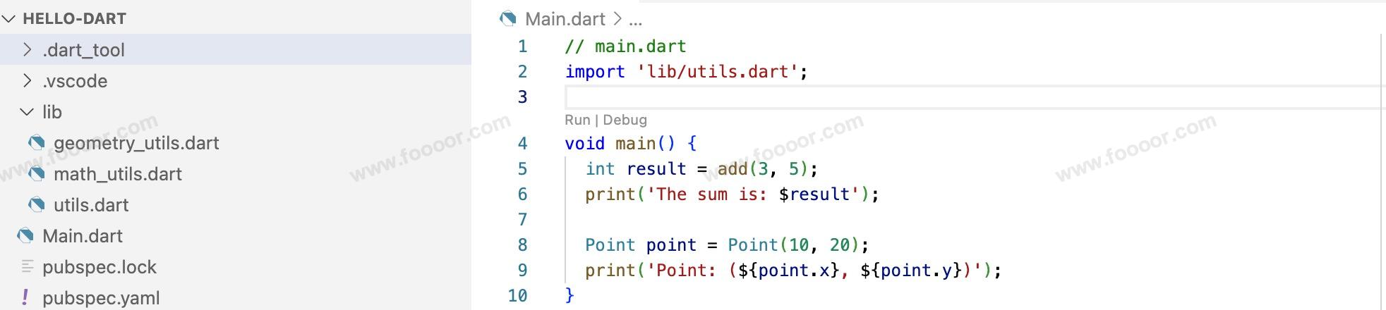 现在编写 Main.dart,在 Main.dart 中引入和使用 utils.dart :
