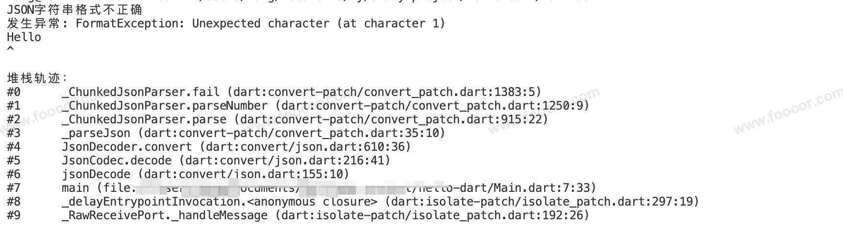 }上面的程序执行到 jsonDecode(jsonString) 会抛出异常,然后执行 catch 块中的语句。出现异常后,在出现异常语句后的代码是无法被继续执行的。