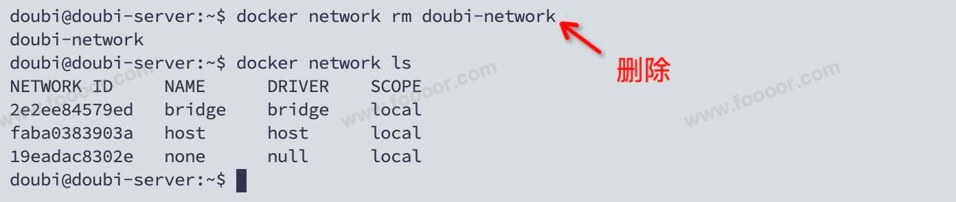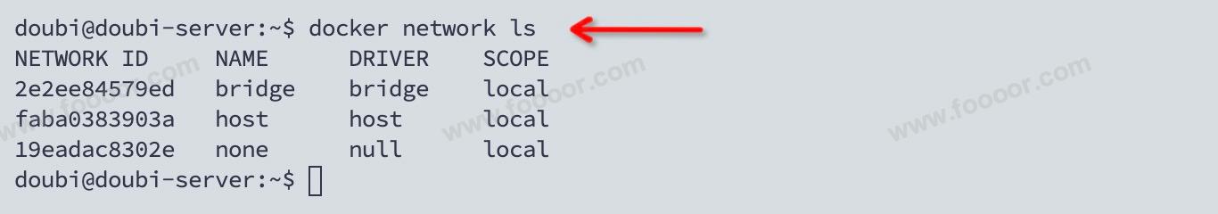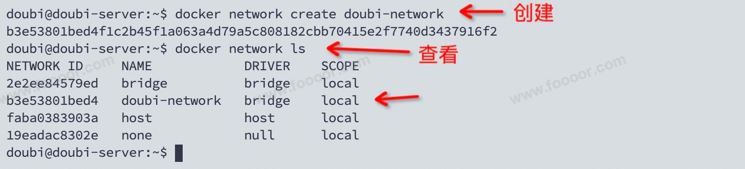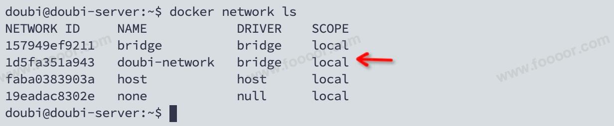 docker network create doubi-network创建未完成,可以查看到网络,默认也是 bridge 模式。
