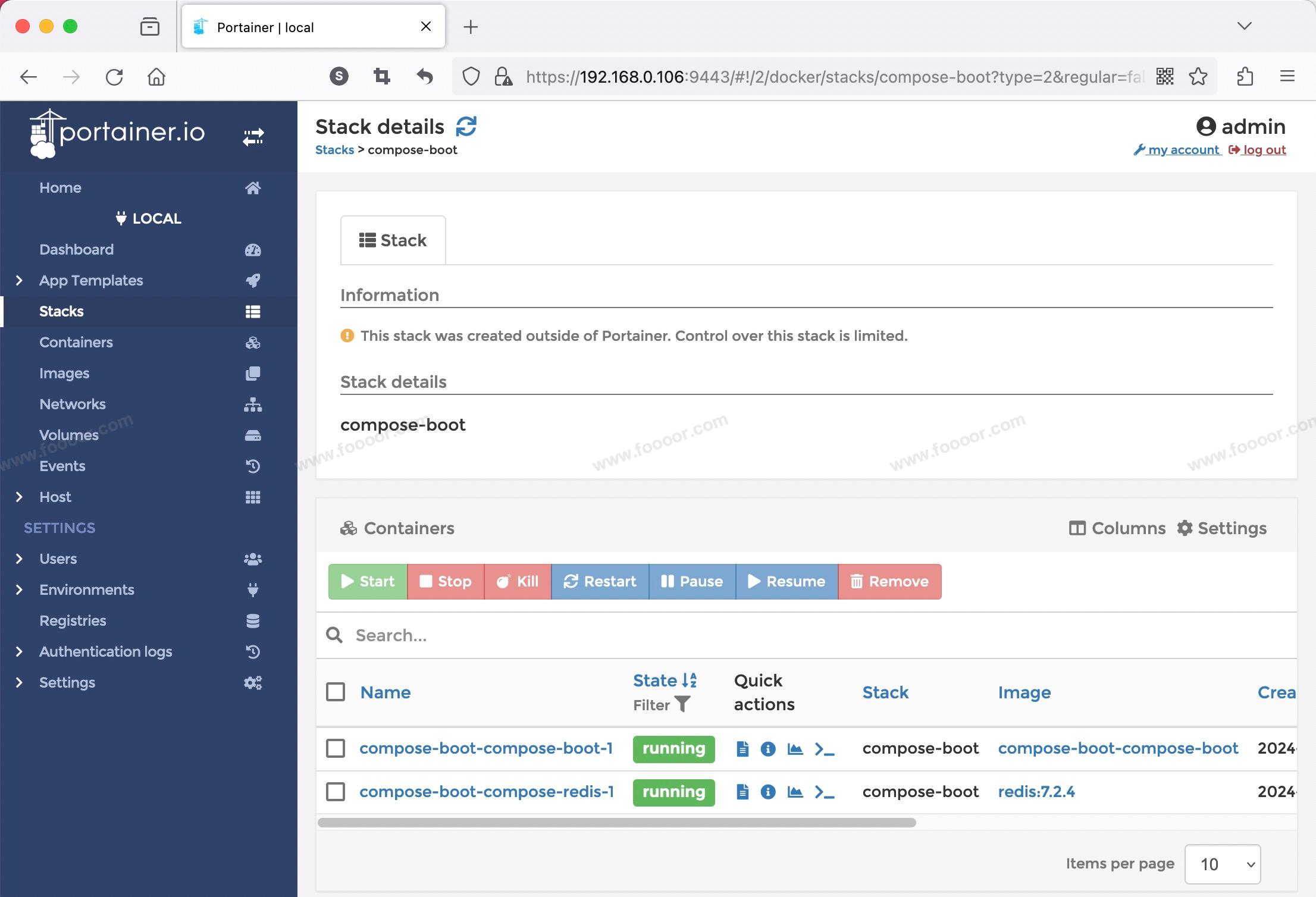 安装完成,可以通过 https://宿主机IP:9443 来访问 Portainer。注意是 https,但是证书需要信任一下。