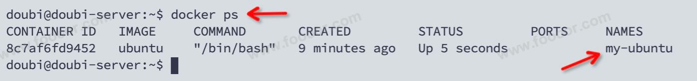 docker run -it --name my-ubuntu ubuntu /bin/bash