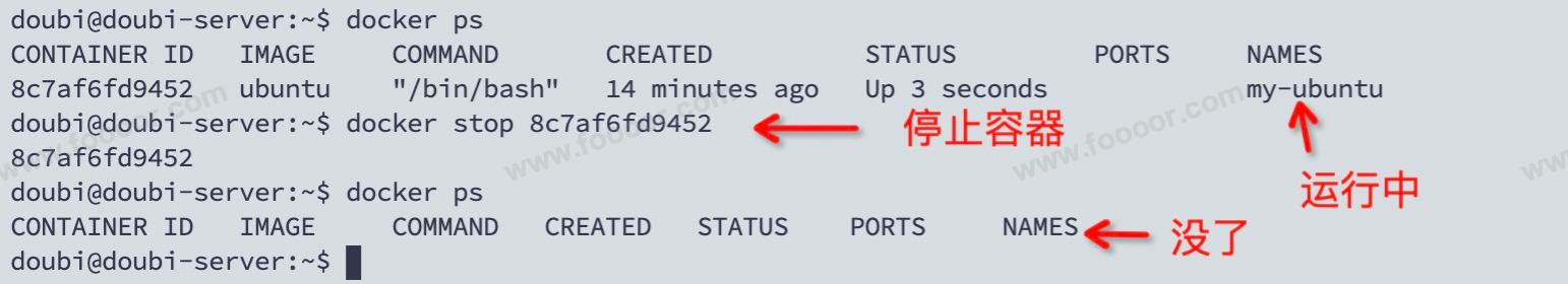 正在运行的容器,可以使用 docker stop 命令停止: