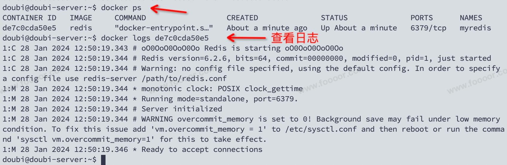 可以看到 redis 成功运行,但是如果你以 -d 的方式启动 Ubuntu 或 CentOS 容器,docker run -d ubuntu ,运行完成,查看运行中的容器发现没有对应的容器,因为 Ubuntu 和 CentOS 容器是交互式容器,没有前台进程就会退出,所以启动完就退出了。其实 redis 也可以使用交互式 docker run -it redis 方式启动,但是非常不推荐这么做。