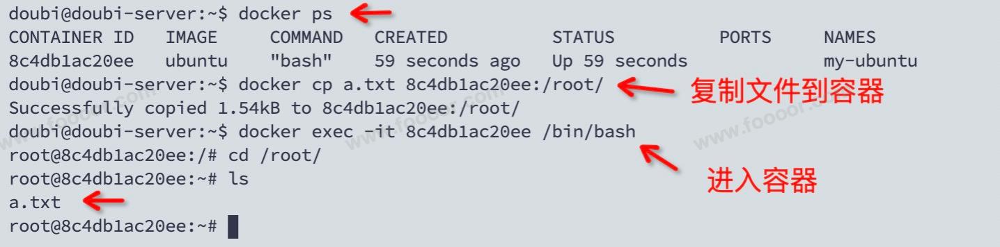 我们有时候需要在宿主机和容器之间传输文件,使用 docker cp 命令,在宿主机和容器之间相互拷贝文件: