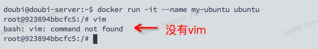 docker run -it --name my-ubuntu ubuntu可以看到原始 Ubuntu 镜像容器中没有 vim :